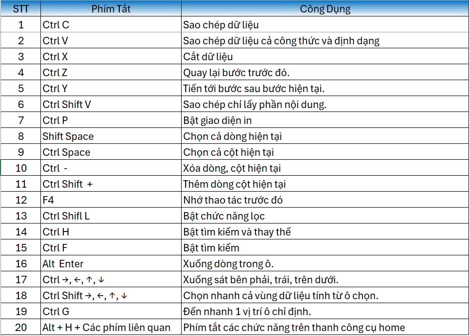 Bài 1: Các phím tắt thông dụng nhất trong excel?