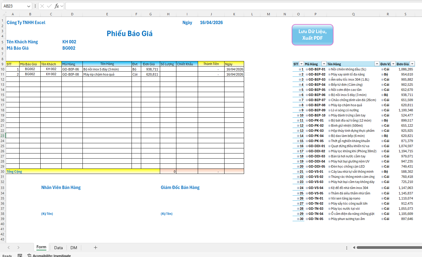 File Tính Nguyên Liệu Tiêu Hao Từ Thành Phẩm Theo Định Mức 📅 Ngày đăng: 11/04/2026 | ✍️ Tác giả: Việt Exc Công dụng: Lưu ý: