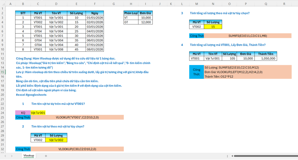 Công Dụng: Hàm Vlookup được sử dụng để tra cứu dữ liệu từ 1 bảng dọc.