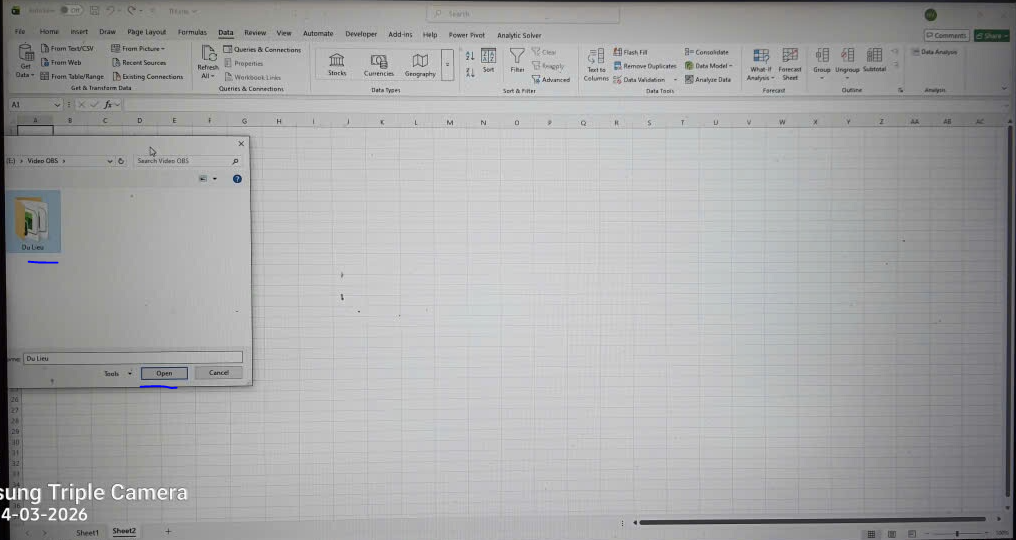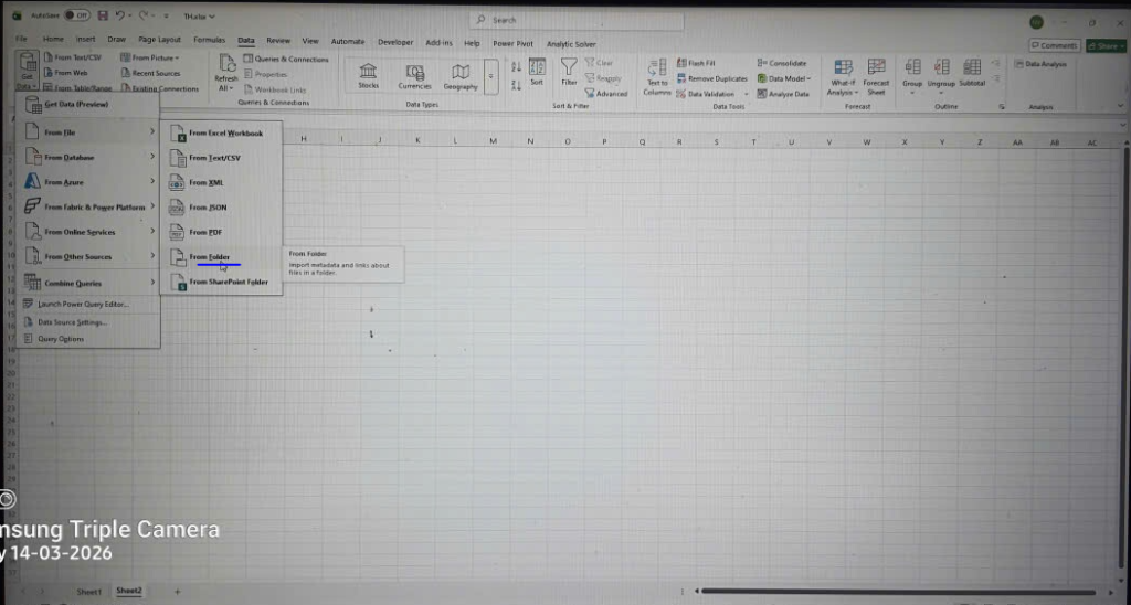 • B1: Data -> Get Data -> From File -> From Folder -> Chọn Folder lưu các file dữ liệu.