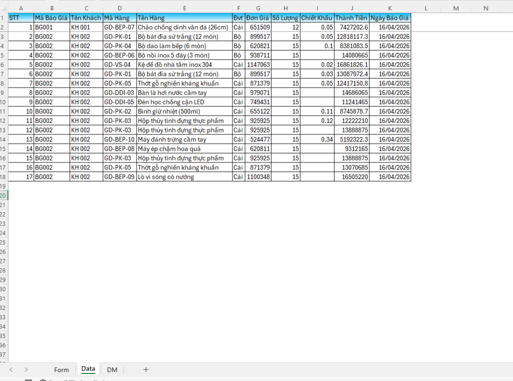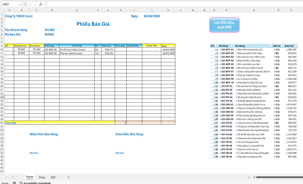 - Tự động tạo file pdf lưu trữ cùng thư mục lưu file báo giá.