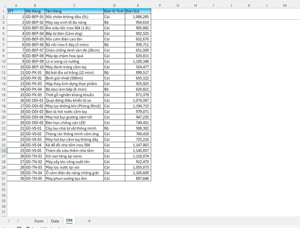 - Tự động xóa mã hàng trong danh sách.