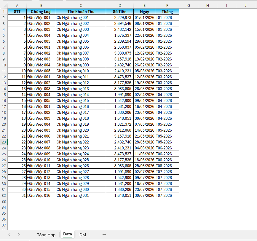 • Khi sử dụng vui lòng chú ý các ô, cột có công thức.