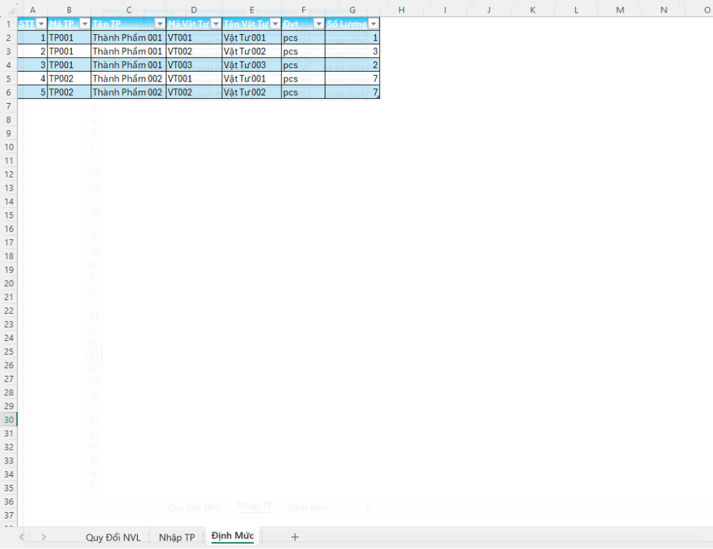 - Sử dụng để xây dựng file nhập xuất tồn nguyên liệu, hoặc tính toán nhu cầu đặt hàng.