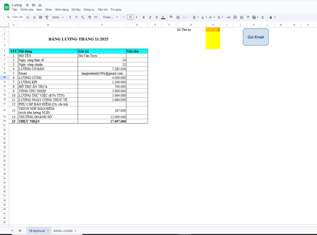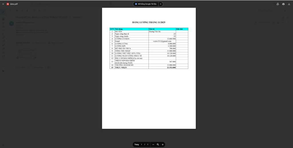 - Tự động cập nhật, gửi phiếu lương qua địa chỉ email của nhân viên.