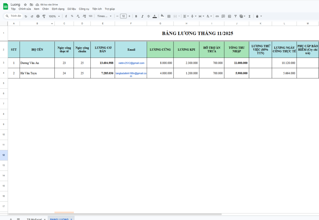 - Khi sử dụng vui lòng chú ý các ô, cột có công thức.